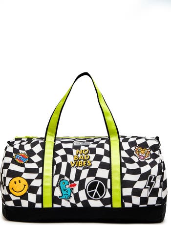 This roomy rainbow duffle bag adorned in the cutest patches is the perfect bag for sleepovers or vacations. X 10.5| Adjustable Webbing Crossbody Strap Ranges from 11 to 24 inches| Webbing handle drop is 7.5"