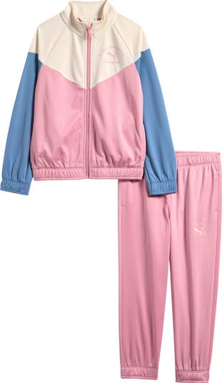 Cool colorblocking and chevron panels bring an old-school vibe to this tricot track jacket and pants set made for your modern, sporty kid.