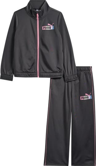 Colorful logos and contrast pink piping bring kid-approved detail to this sporty track jacket and coordinating pants set.