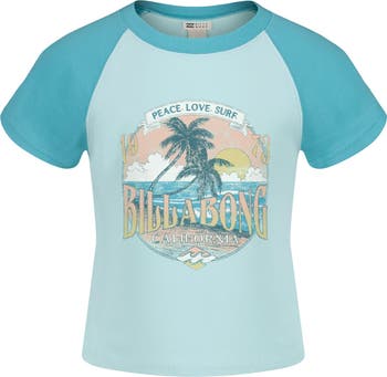 A throwback graphic puts your child in sun-and-sand mode in this cotton T-shirt with colorblocked raglan sleeves.