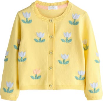 Stitched blooms sweeten this soft cotton-blend sweater that'll keep them cute and cozy.