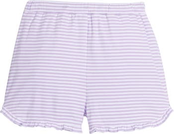 - This pull on style is made from a comfy, striped knit fabric with an elastic waist and a petite ruffle detail around the leg opening. Our Tulip Shorts are exactly what your little girl will want to wear day after day!