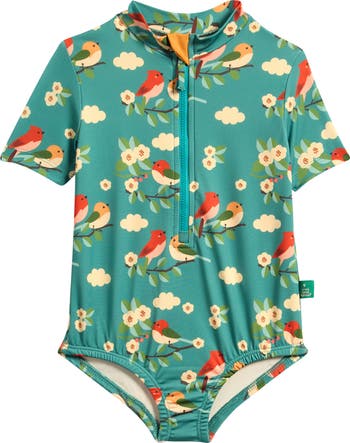 Built-in sun protection is just what they need for safe fun in the sun in this adorable one-piece swimsuit.