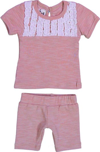 Your little darling will look picture-perfect in a set that features a ruffled shirt and pull-on shorts, both mostly made from soft cotton.