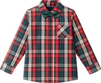 An included bow tie provides a snazzy upgrade to a this festive plaid shirt made from soft cotton.