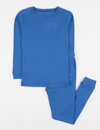 - Crewneck top and elastic-waist pants with ribbed cuffs at wrists and ankles