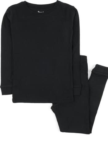 - Crewneck top and elastic-waist pants with ribbed cuffs at wrists and ankles