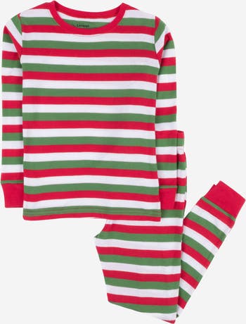 Leveret Kids Two-Piece Striped Cotton Matching Family Holiday Pajamas, Alternate, color, Red White & Green