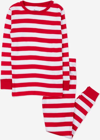 These Kids Two-Piece Striped Cotton Matching Family Holiday Pajamas feature festive red, green, and white stripes that bring seasonal charm to bedtime. Made from soft, breathable 100% cotton, the snug-fit silhouette meets children’s sleepwear safety standards and includes a crewneck top with elastic-waist pants finished with ribbed cuffs at the wrists and ankles for a comfortable fit. Tagless labels help reduce irritation, and the durable cotton fabric is machine washable for easy care. Perfect for holiday photos or Christmas morning, these Matching Family Pajamas combine comfort and cheerful style for the season.