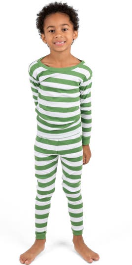 These Kids Two-Piece Striped Cotton Matching Family Holiday Pajamas feature festive red, green, and white stripes that bring seasonal charm to bedtime. Made from soft, breathable 100% cotton, the snug-fit silhouette meets children’s sleepwear safety standards and includes a crewneck top with elastic-waist pants finished with ribbed cuffs at the wrists and ankles for a comfortable fit. Tagless labels help reduce irritation, and the durable cotton fabric is machine washable for easy care. Perfect for holiday photos or Christmas morning, these Matching Family Pajamas combine comfort and cheerful style for the season.
