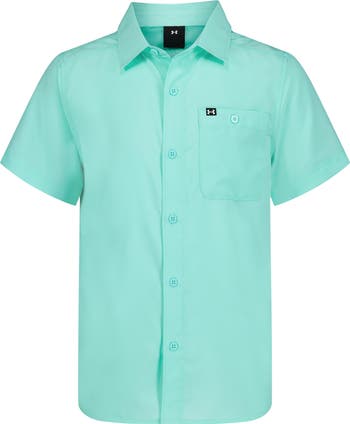 Stretchy, sweat-wicking fabric makes a warm-weather favorite of a shirt that dries quickly and blocks UV rays to extend your kids' fun in the sun. Durable and snag-resistant, it sports a relaxed fit and a panel of breathable mesh under the collar to keep your child looking smart and staying comfortable in any activity.