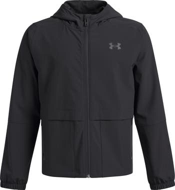 Stretchy, water-repellent fabric moves with them rain or shine in this moisture-wicking jacket that's lightweight, breathable and ready for adventure.