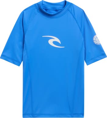 Stretchy, UV-blocking fabric keeps your kid comfortable in and out of the water in a rashguard designed short raglan sleeves and a higher neck offer added protection against the sun.