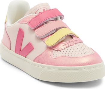 Triple adjustable straps ensure a secure, comfortable fit for your kiddo in this iconic leather sneaker punctuated with signature V-logos at the sides.