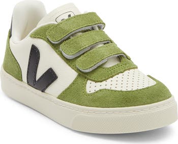 Triple adjustable straps ensure a secure, comfortable fit for your kiddo in this iconic leather sneaker punctuated with signature V-logos at the sides.