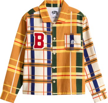 A bright plaid and letterman's 'B' turn up the volume on a varsity-inspired shirt made from pure cotton twill.