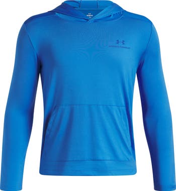 Moisture-wicking fabric helps keep active kids comfortable in a lightweight hooded pullover designed with breathable mesh at the back and a fixed hood.