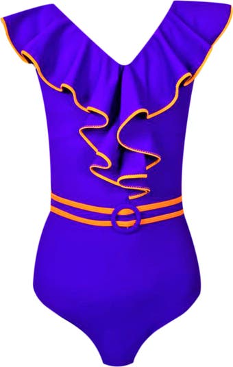Kids' Vibrant Ruffle with Belt Detail One-Piece Swimsuit