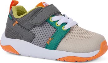 A breathable mesh upper provides excellent ventilation in this kid-sized sneaker that features a wide toe box for growing feet and is conveniently machine washable. A cushy FlexiRun sole provides strategic traction under each step from home to the playground and back.