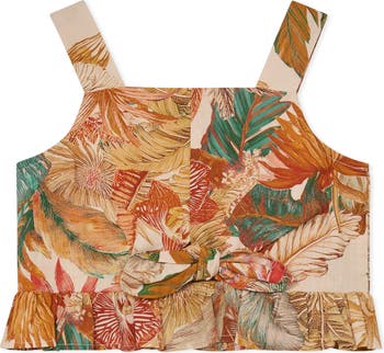 A frilly hem and bow sweeten this breezy cotton tank top that will bring the vacay vibes to your trendsetter's daily look.