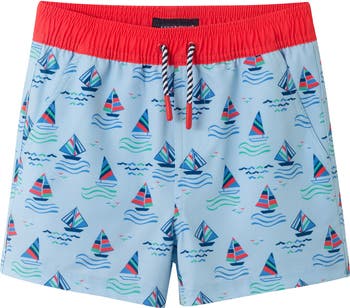 Let them splash and play in these comfortably lightweight swim trunks made with a cinchable drawstring waist and handy pockets.