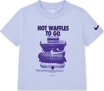 A vintage ad selling the revolutionary Waffle Trainer gains traction on the front of a T-shirt made with breathable cotton and sized for kids who like to run and relax in comfort. Pair it with any favorite look to pick up the pace of playtime, fun time and even down time.