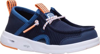 Comfortable wet or dry, this chukka-style slip-on sports a breathable mesh upper and drainage holes underfoot to channel water out, whether your kid is splashing in the rain or skipping rocks by the dock. Knotted elastic laces make for easy on and off, while targeted rubber in the tread keeps every step sure-footed no matter what the weather brings.
