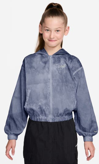 A water-repellent coating blocks out the rain as they go about their day in this relaxed-fit track jacket.