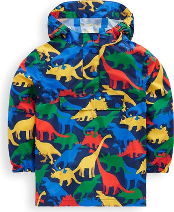 Your child will take to rainy days like a happy duck in this waterproof popover jacket that's brightly printed and topped with a roomy hood.