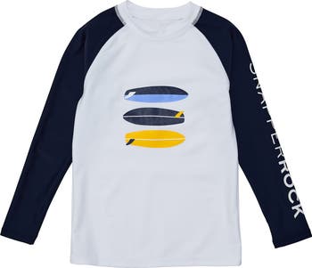Your tiny surfer is ready to catch a wave in this superstretchy rashguard boasting colorblocked raglan sleeves and a minimalist graphic of a longboard. UPF 50+ sun protection shields them from the sun's harmful rays, while quick-drying technology keeps them feeling comfortable between dips.