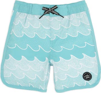 Lightweight, quick-drying fabric made in part with recycled coconut husks keeps your kid comfortable in and out of the water in board shorts that block UV rays for enhanced protection all day in the sun. The chafe-free liner shorts provide a supportive, stay-put fit, while built-in stretch and scalloped hems allow for easy movement in any activity.