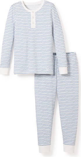 Supersoft pima cotton spells sweet dreams for your little one in these long-sleeve, henley pajamas with wavy stripes covering the fitted cut.