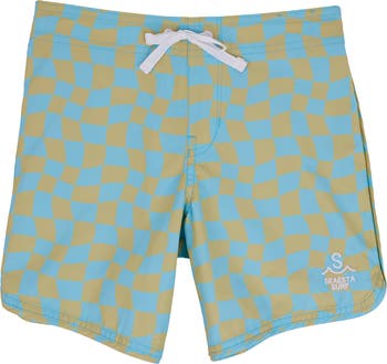 Wavy patterns and bright colors invite sunny-day fun in board shorts made of organic and recycled fibers to add an eco-conscious splash to your young swimmer's time at the beach or pool. Elastic in the waist and scalloped leg hems ensure easy movement and a comfortable fit both in the water and on land.