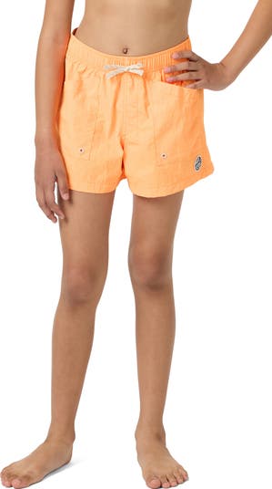 Ready for cannonballs and shoreline sprints, these board shorts keep your kiddo comfortable with an elastic drawstring waist and easy swim-ready fit.
