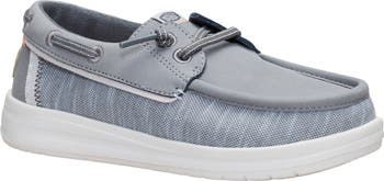 Classic, casual and exceptionally comfortable, this slip-on shoe sports a stretchy upper with faux-leather detail and knotted elastic laces for easy on and off. The cushioned insole and rugged outsole make it a great foundation for their favorite laid-back looks.
