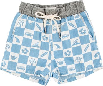 A checkerboard of fun under the sun covers soft cotton shorts that are lightweight and comfy for logging lots of sand time.
