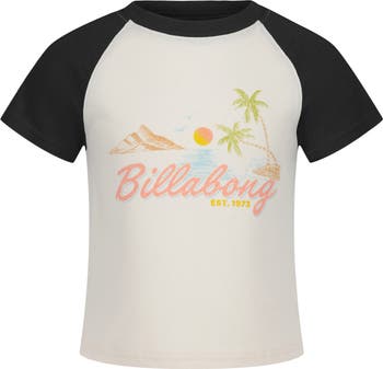 Your kid will love the beach-day vibes of this fitted T-shirt featuring retro graphics and short raglan sleeves.