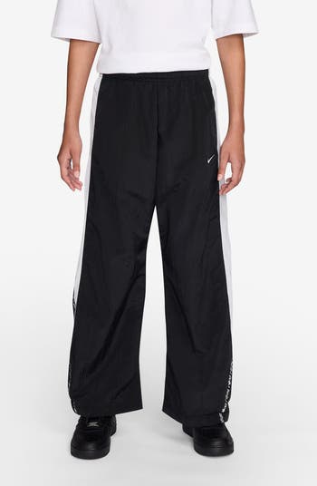 Your young dancer will love heading to the studio in the lightweight, airy comfort of these wide-leg pants detailed with mesh side stripes and the iconic Nike Swoosh.