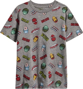 An assortment of superheroes brings kid-pleasing impact to a graphic T-shirt made from a comfy cotton-forward blend.