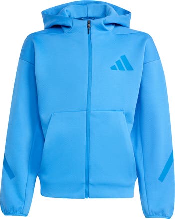 Cozy, three-layer adidas PRIMEKNIT fabric keeps your active kid warm as they zoom through their day in this logo-stamped hoodie featuring tech-inspired details.