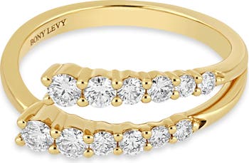 Handcrafted from warm 18-karat gold, this sculptural crossover ring is segmented with sweeps of 12 prong-set diamonds that catch the light like a glittering constellation.