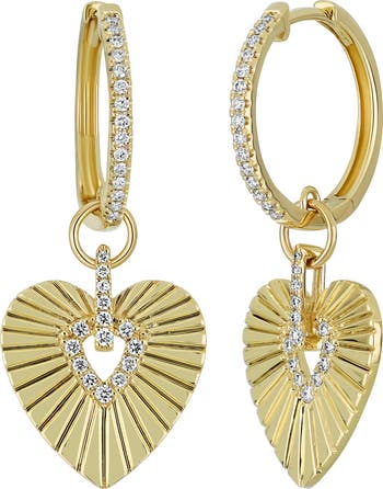 Kiera Diamond Heart Drop Huggie Hoop Earrings