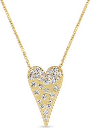 Glittering diamonds add romantic sparkle to a heart-shaped pendant necklace handcrafted in 18-karat gold.