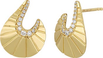 Channeled segments of 18-karat gold are designed to capture light in these polished stud earrings topped with lines of pavé diamonds.