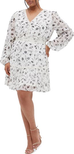 Embroidery trims the bodice of this lightweight chiffon dress framed by sheer long sleeves and covered in a romantic floral print that adds to its dreamy charm.