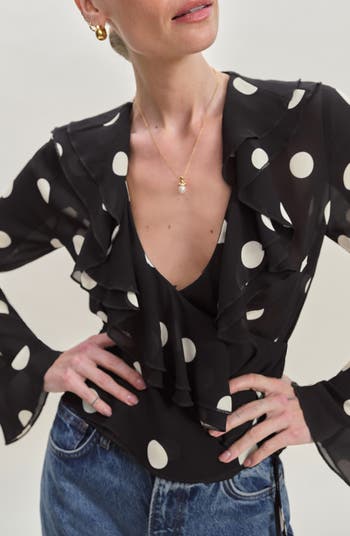 Kilah Ruffle Neck Polka Dot Wrap Top
