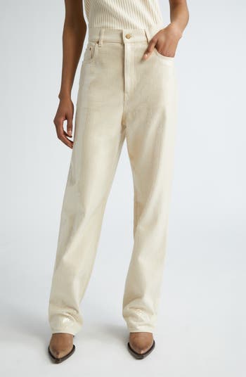 Casual-staple twill pants branded with signature star hardware get an ultraglamorous makeover from allover transparent sequins.