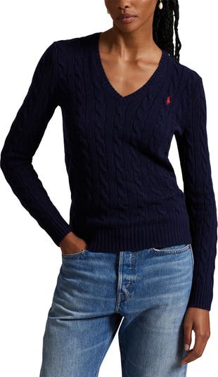 This trim and wonderfully warm V-neck sweater is textured with cables and enriched with luxurious cashmere, giving it wear-forever status. An embroidered logo completes the classic look.