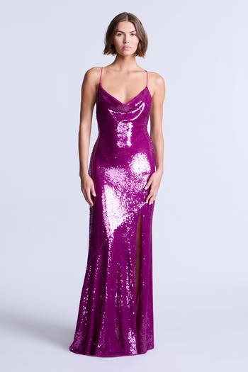 - Sleeveless design. Floor-length gown silhouette. Polyester-spandex blend with stretch. Vibrant fuchsia colorway. Imported. Dry clean only.
