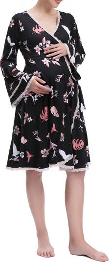 Lovely lace trims this soft, stretchy robe that's covered in gorgeous blooms and perfectly cradles your bump.